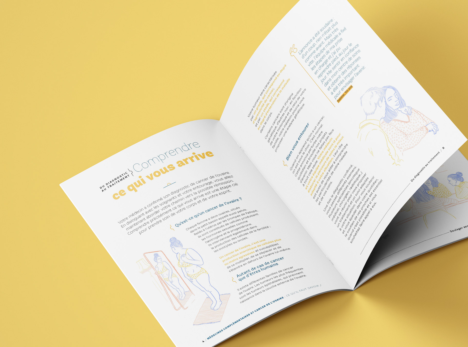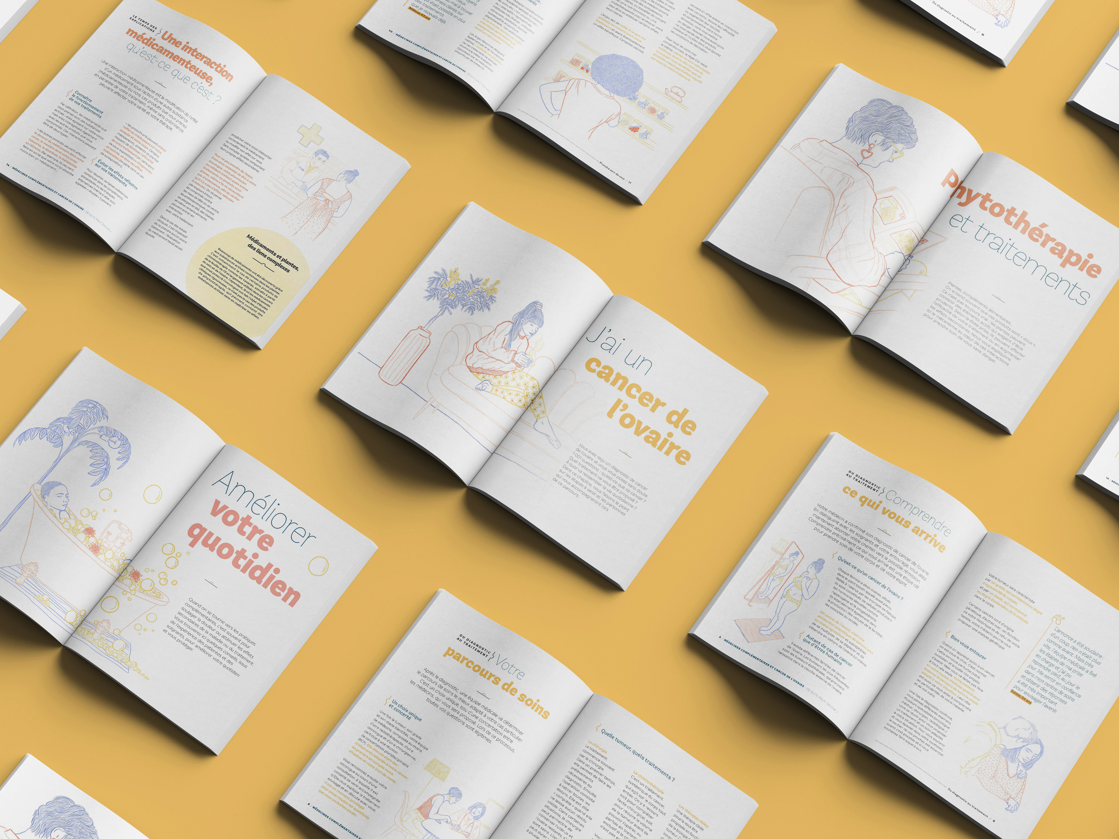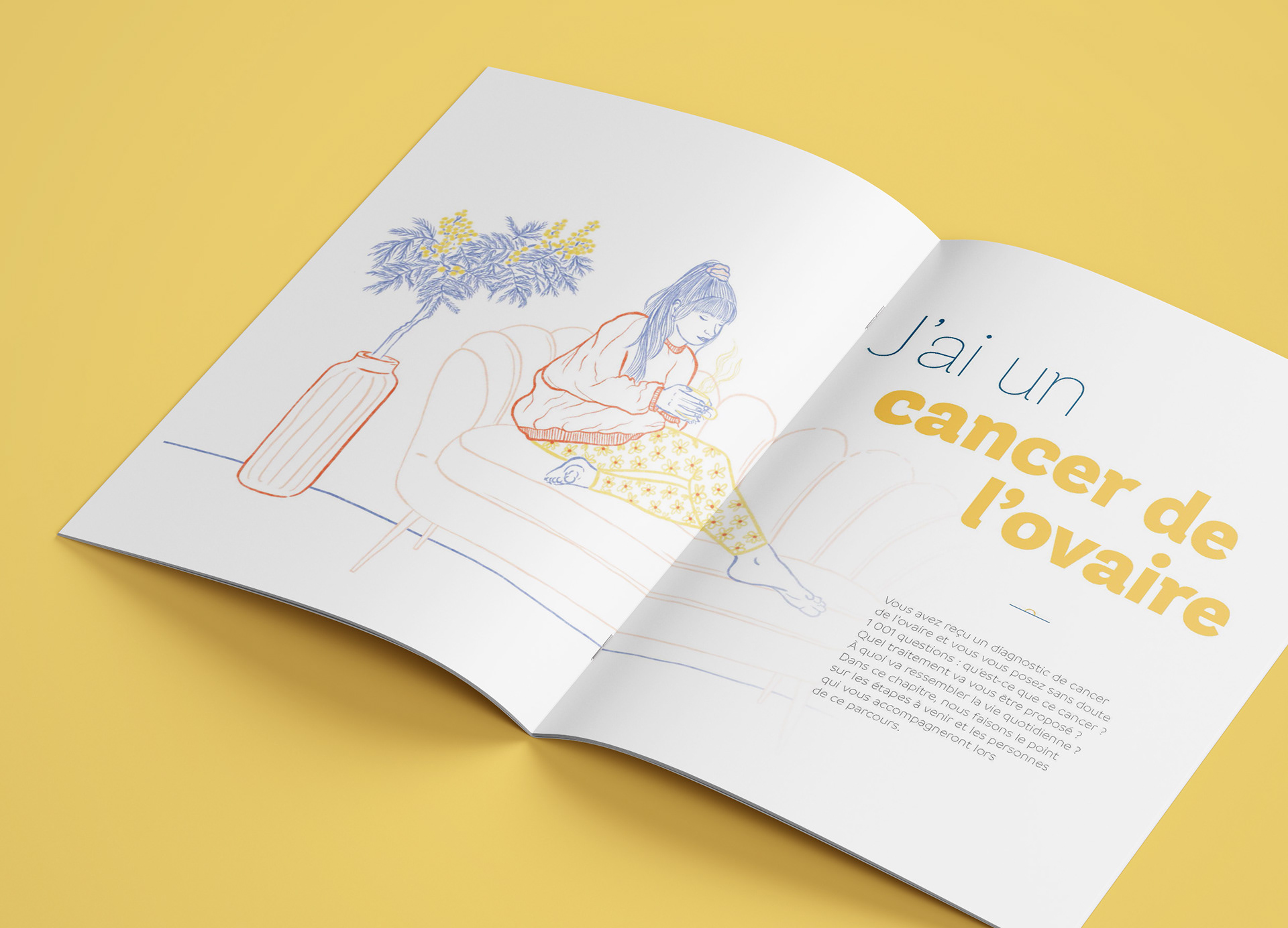 Illustration d'un livret à destination des patientes souffrant d'un cancer des ovaires, conçu par