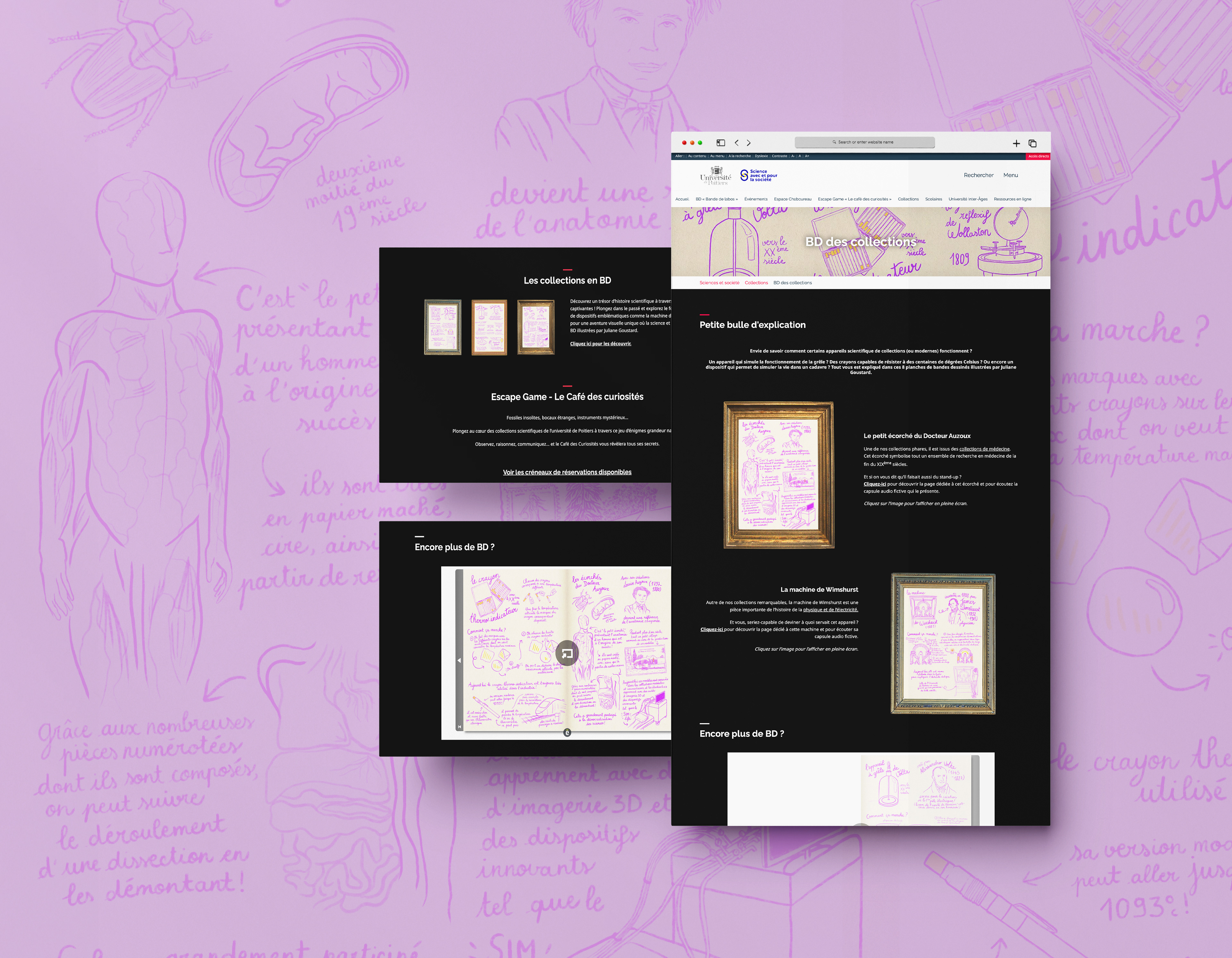 Réalisation de planches illustrées expliquant le fonctionnement et l'histoire d'objets scientifiques appartenant à l'Université de Poitiers.